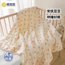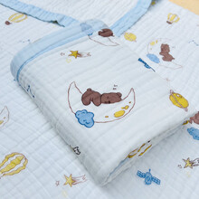 棉加加婴幼儿纱布空调被儿童夏凉被四季毛毯盖毯被子婴儿被褥纯棉新生儿 加大110*150梦熊蓝/0-12岁 拉伸110*110cm
