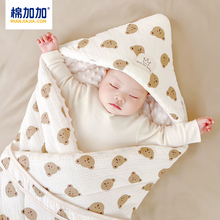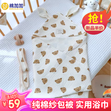 棉加加新生儿包被婴儿防惊跳抱被纯棉纱布a类春秋待产包单四季睡袋襁褓 【 春夏四层】长耳熊头 加大款95cm